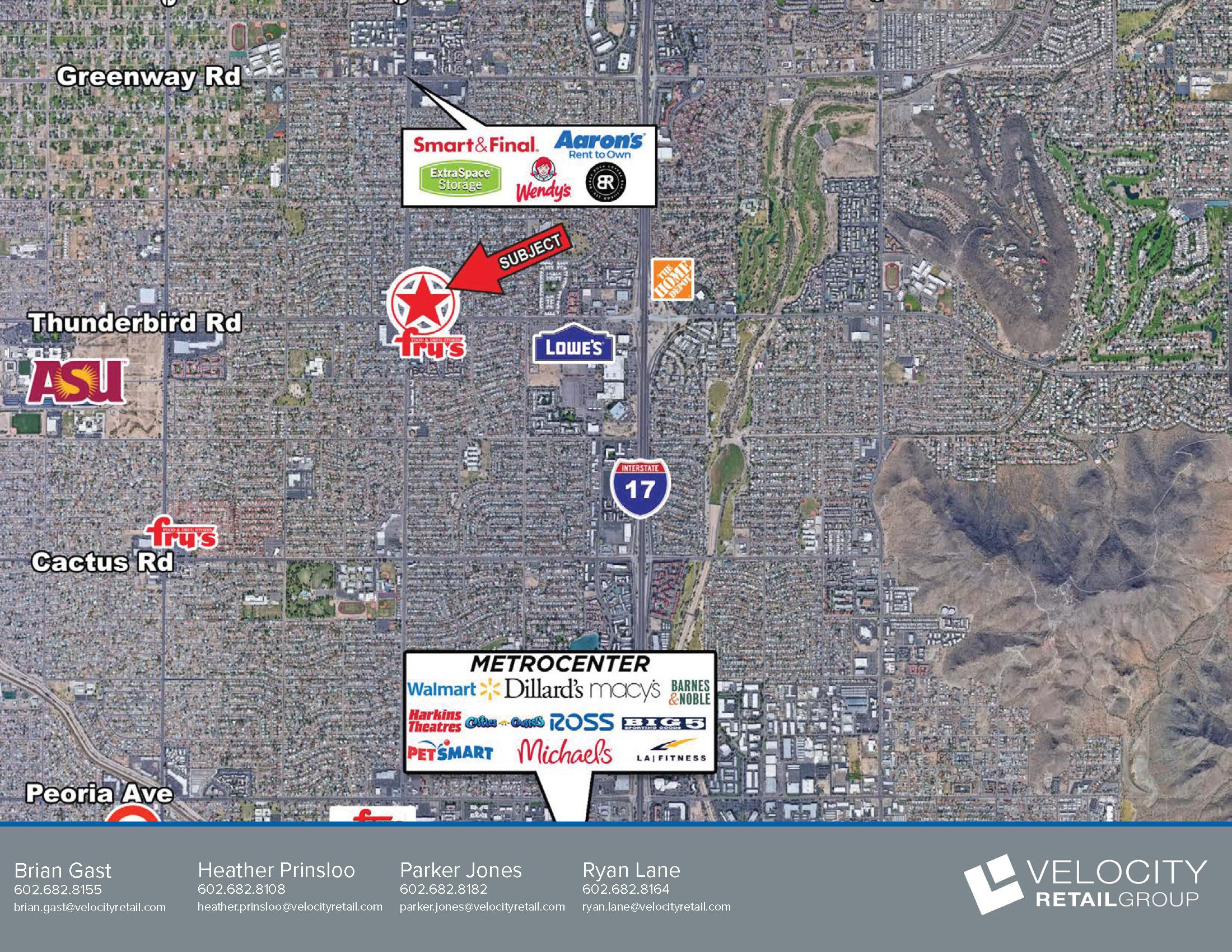 - Directly across the street from Fry’s Food and Drug